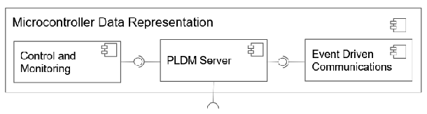 The microcontroller portion of the PLDM stack is designed to provide lightweight, responsive, and standards-compliant support for PLDM-based communication and control in embedded environments. It consists of three primary components: a PLDM server function, an optional event-driven communication agent, and a control/monitoring function. Together, these components enable the microcontroller to participate as a PLDM responder, manage platform data, and interact with external sensors and motors in a structured and interoperable manner. The main components are shown in Figure 6.